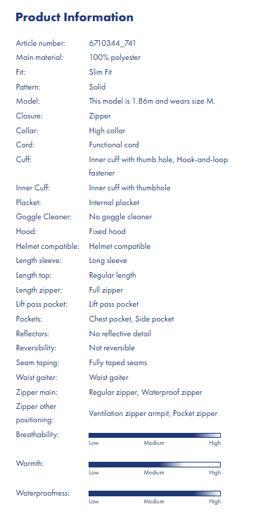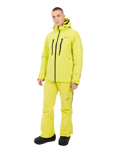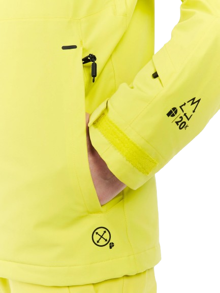 Fabricata din materiale reciclate si tratata fara PFC, geaca asigura impermeabilitate 20K si respirabilitate excelenta, fiind complet etansa datorita cusaturilor lipite integral. Gluga fixa compatibila cu casca si gulerul inalt asigura protectie maxima impotriva vantului si zapezii, in timp ce ventilatiile sub brate permit reglarea temperaturii. Croiala slim fit si lungimea standard ofera un aspect dinamic si o libertate de miscare perfecta pentru snowboard si schi.