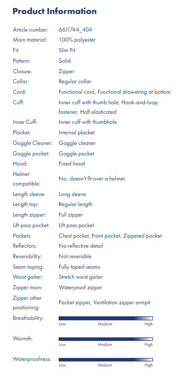 Realizata din materiale reciclate si certificate PVRE Green, aceasta geaca ofera o impermeabilitate foarte ridicata de 20K si respirabilitate excelenta, mentinand confortul chiar si in conditii de zapada intensa sau vant puternic. Cusaturile complet lipite, fermoarele rezistente la apa si tratamentul water repellent garanteaza protectie totala impotriva umezelii. Croiala slim fit si preformarea ergonomica asigura o mobilitate naturala si un aspect modern pe partie.